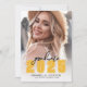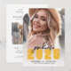 Convite de Formatura e Festa Minimalista Clássico. A frente apresenta uma foto em página inteira com um gradiente branco na parte inferior que se funde perfeitamente à imagem. Sobre o gradiente, "2026" aparece em uma fonte clássica e negrita, estilo escolar, em dourado amarelo. Acima do ano está "Graduate" em uma fonte cursiva, que pode ser alterada para "Classe de" se preferido. Abaixo do ano, o nome do formando e o nome da escola são apresentados de forma elegante. O design atual usa tons pretos e dourados para um visual atemporal e sofisticado, mas todas as cores podem ser personalizadas para combinar com as cores da escola ou preferências pessoais.