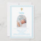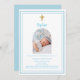 Um fundo branco, decorado com um quadro azul-claro, azul-céu e um ouro cruza Personalizar e adicione um nome de foto e detalhes. Texto azul. Quadro fotográfico em forma de arco.