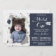 Wild One Tribal Boho Arrow Primeiro Convite Foto Aniversário. Marinho azul, azul claro e Cinza. Fácil de personalizar o design, adicione a foto do seu pequeno e o texto personalizado.
