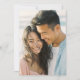 Este convite de casamento apresenta uma fotografia calorosa e íntima de dois indivíduos num abraço alegre, colocado contra um cenário exterior suavemente desfocado. A paleta de cores é suave e natural, com tons de rosa e azul pálido criando um contraste harmonioso. O design captura um momento autêntico de afeto e felicidade, transmitindo um tema de amor e companheirismo através do seu estilo espontâneo. Perfeito para casais que desejam partilhar as suas emoções sinceras, este convite emana alegria e ternura, tornando-o ideal para celebrar uma união especial.