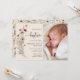 Convite Fotográfico Baptism Wildflower. Capture a beleza do marco sagrado de seu pequeno com o Convite Floral de Foto Baptism, projetado para misturar fé, elegância e um toque pessoal. Um arranjo floral espantoso de flores silvestres, gramíneas secas e folhagem verde-salva macia em tons quentes, terracotta, e matizes laranja queimadas, armações da sua foto escolhida, criando uma sensação de coração e eterno. A escrita refinada acrescenta um toque sofisticado, enquanto a parte de trás apresenta um padrão belamente coordenado para uma camada extra de charme. Compartilhe este momento especial com a família e os amigos de uma forma tão única e significativa como a ocasião em si — comece a personalizar hoje!