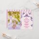 Um belo convite para uma primeira festa de aniversário, com bagas desenhadas à mão e um fundo listrado.