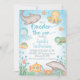 Foto Blue Ocean Oneder O Convite para primeiros aniversarios do Mar Sob o mar recebeu o primeiro convite de aniversário para um bebê com várias criaturas ou criaturas marinhas, submarino e algas marinhas. Este menino está sob o convite de aniversário do mar tem um título não editável e uma foto atrás.
