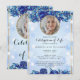 Convites Foto Blue Sparkly Floral Dourada Celebração da Vid