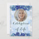 Tão elegantes convites azuis decorados com rosas azuis e sotaque dourado junto com faíscas. O convite para o memorial do funeral Apresenta um quadro elegante para colocar a foto da sua amada pessoa com um estilo botânico e floral. A design também vem com fontes clássicas e caligrafia moderna para torná-la mais bonita. O convite pode ser facilmente personalizado e se você quiser mais personalizações ou recursos extras que você possa contactar, e eu terei o prazer de ajudá-lo.