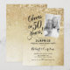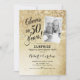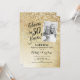 Convite de aniversário de casamento de 50 anos surpresa com foto na frente do cartão. Design elegante em dourado brilhante falso. Caracteriza-se por fonte de tipografia script e confetes. Perfeito para uma celebração de aniversário de cinquenta anos dourados com estilo. Personalize com seus próprios detalhes. Mensagem-me se precisar de ano personalizado. Convites Zazzle impressos ou modelo digital para impressão instantânea.