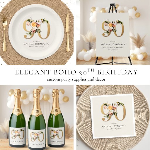 90th Birthday Floral Boho Gold Text CollectionCriado por Yini Cheah