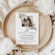 Celebre sua história de amor com este belo convite de casamento preto e branco. Apresentando um delicado design floral de aquarela em tons mutados, este convite é enquadrado em torno de uma ilustrada foto do casal feliz. A elegante tipografia e paleta de cores suaves criam uma sensação romântica e eterno, perfeita para anunciar seu dia especial. É uma bela maneira de compartilhar sua alegria e convidar seus entes queridos a testemunhar seu sindicato.