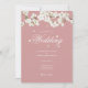 Bonito convite floral branco de casamento, com um delicado primavera, florescente, reunindo seus detalhes de casamento em letras elegantes em um fundo de rosa empoeirado. Personalize com seus detalhes de eventos especiais. O reverso apresenta sua própria foto especial. Projetado por Thisnotme©