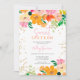 Entra nos holofotes enquanto brindamos a 16 anos de boas memórias! Nosso Dourado Convite Floral 16 é seu ingresso de ouro para uma celebração inesquecível. Imagem de flores silvestres pintadas manualmente dançando em tons de laranja, rosa, amarelo e verde, lançando um feitiço de beleza natural sobre seu dia especial. Com traços delicados de ouro reluzente, esse convite adiciona um borrão de magia, colocando o palco de uma solteira cheia de risos, alegria e o brilho dos sonhos juvenis. Vamos faz seu doce 16 brilhar como nunca!