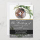 Eucalipto Botânico Foto tudo em um Convite Elegante, moderno e delicado convite que você pode personalizar com sua foto como casal para torná-la ainda especial. A design romântica minimalista apresenta uma magnífica e elegante tipografia em um belo fundo com uma aparência simples e limpa. Salve o papel, incluindo os detalhes na parte traseira do convite de casamento, em vez de em um cartão de cercado separado. Inclua as informações de RSVP também se o seu convidado responder eletronicamente (opcional). casamento frontal e traseiro, elegante tudo em um casamento, moderno em um casamento, convite simples para o casamento do barato, casamento romântico barato, casamento preto e branco barato, detalhes minimalistas de recepção e rsvp, tipografia clássica de chic k200, contemporâneo de outono neutro clássico, caligrafia de primavera-verão limpa
