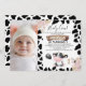 Foto branca negra Boho Vaca sagrada Floral Convite Aniversário Vaca branca Recebeu o primeiro convite de aniversário de uma menina com uma vaca branca e negra fofa, um padrão de impressão de vaca e alguns adoráveis arranjos florais cor-de-rosa. Este design também apresenta um número de brilho dourado sutil e removível e a foto da sua garotinha. Este convite de aniversário temático da vaca é uma maneira fofa de convidar convidados para uma primeira festa de aniversário de uma vaca sagrada.