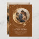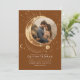 Este convite para o casamento narra a história do seu amor sob a cobertura celeste, seja "Sob as Estrelas", "Escrito nas Estrelas" ou "Para a Lua e Volta". Mostra um belo pano de fundo noturno, com sua foto elegantemente colocada contra uma tapeçaria cósmica de luas e sóis. Este design imaginativo desenhar seus hóspedes no enigma do universo, colocando a essência de seu vínculo no coração dessa jornada estelar. Reforçado por um vibrante teracotta e paleta dourada, o convite expele um charme boêmico contemporâneo, cativando instantaneamente seus convidados.