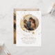 Este convite de casamento tece intricadamente a história da vossa união sob a vasta extensão do cosmos, apta para temas como "Sob as Estrelas", "Escrito nas Estrelas" ou "À Lua e Volta". Apresenta uma imagem impressionante do céu noturno, enquadrando sua foto contra uma montagem celeste de luas e sóis. O design criativo atrai seus convidados para o mistério do cosmos, fazer a história de sua conexão a peça central dessa viagem cósmica. Vestido em branco e ouro, o convite irradia uma atração boêmica moderna, engajando imediatamente seus convidados.