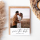 Obtenha entusiasmo para o seu casamento enviando um cartão de data com fotos e caligrafia moderna e crônica. Veja nossa coleção de convites para fotos para mais estilos ou orientações de fotos. Sua foto é o recurso deste Minimalista e Moderno Salvar a Data. E seus nomes são a surpresa. É feito por medida, e exclusivo devido à sua foto. O nível profissional, a impressão de alta qualidade e a escolha do papel fazem com que você salve a data luxe. Mas podemos esquecer o preço extremamente elevado. Crie facilmente a data com nossos modelos. Visite esta página para começar.