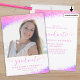 Convite De Fotografias Com Glitter Rosa De Script De Rico De formando. Convite para fotos de formatura feminina moderno com uma foto destacada com uma camada brilhante de falso rosa brilhante e uma tipografia de escrita de caligrafia rosa-rico na frente e seus detalhes de celebração no verso. ASSISTÊNCIA: para obter ajuda com a modificação ou personalização do design, transferir o design para outro produto ou, se você quiser coordenar itens, entre em contato com o designer ANTES DE ENCOMENDAR através da guia MENSAGEM de Bate-papo Zazzle ou envie um email para makeitaboutyoustore@gmail.com.