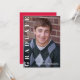 Este design apresenta um prêmio de formando de formando de graduação, um mais velho de fotografia vermelho de crimson, um símbolo clássico de folhas de riso tradicional, um conselho de morteiro de boné de formatura, um quadro mínimo simples e minimalista, um nome personalizado de cor escolar, com classe de tipografia caligráfica, um anúncio clássico de graduação, convites de festa de formatura, um quadro de graduação vermelho de crimson cartão com fotos