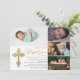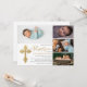 Convidado para Batismo, moderno e elegante colagem fotográfica. Design apresenta 4 fotos do bebê, cruz de ouro e detalhes de celebração em letra de tendências.