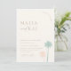 Contemporâneo Convite De Foto Minimalista De Casamento De Chic Costeira. Tipografia bege moderna com sotaques de palmeira com fotografia de solteiro.