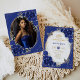 Este belo convite da Quinceañera é adorado com flores azuis reais encantadoras, borboletas espumantes, e cativando a falsa inscrição em ouro, criando um design verdadeiramente majestoso e memorável. Simbolizando a transição da infância para a mulher com graça e estilo, é um convite que irradia elegância, convidando os entes queridos a compartilhar alegria e entusiasmo desse marco significativo.