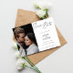 Anime-se para o seu casamento com um cartão de identidade com a sua foto favorita e uma caligrafia. Simples, Moderno, Preto e Branco.