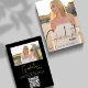 Este design apresenta um roteiro moderno de caligrafia tipográfica, um ouro de ouro e dois esquemas de fotografia pretos, com uma camada elegante de formando, um segundo grau elegante de tendência na moda, uma classe minimalista e simples, convites para o formando de graduação, tipografia do formando e caligrafia, para segundo grau ou anúncio universitário, um convite para festa de formatura de simples e limpo, com um código QR o endereço do URL do site online