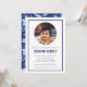 Convite de Foto da Cerimônia do Primeiro Arroz Annaprashan Floral Azul. Este convite de mukhe bhaat bengali apresenta um design floral paisley azul. Perfeito para qualquer bebê hindu. Personalize este design personalizado com seus próprios detalhes e foto.