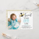 Doce como Bee pode ser o primeiro convite de aniversário com foto. Adorável convite de festas de aniversário de 3 anos com tema de abelha com um toque de cintilação, faux confetti em torno da moldura de foto curva. Este terceiro convite de aniversário editou texto preto e dourado com listras douradas na parte traseira da placa, mudando as cores conforme preferido.