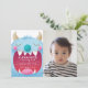 Convite de festas de aniversário bonito para a festa do monstro do seu filho! Ilustração de um monstro azul com dois chifres abrindo a boca. Os textos são dentro com o nome, a idade e a informação da festa do aniversariante. Você pode adicionar sua própria foto do seu filho ao lado da ilustração do monstro. Os textos são facilmente editáveis online.