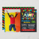 Jump aniversariante convite, esquema de cores primárias com fundo de quadro fino adequado para qualquer idade. Adicione seu próprio texto ao modelo para redimensionar a foto e mais personalização (cor da fonte, estilo da fonte, elementos de movimentação, plano de fundo), clique em personalizar, role para baixo e clique no link "clique para personalizar ainda mais".