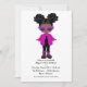 Convite de aniversário com uma mocinha preta na moda com jaqueta rosa-quente, botas e óculos de sol de crochê fofa. É recomendada uma foto em forma quadrada, como Instagram.