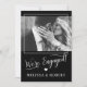 Convites elegantes, clássicos e modernos para festas de noivado de casamento. Cor branca e preta. Um coração pequeno. Letras topográficas manuscritas. A FRENTE do cartão tem foto/figura e ESTAMOS ENVOLVIDOS em letras topográficas de script. Perfeito para qualquer estilo de casamento, a qualquer hora do ano. Convites fáceis de editar - personalize com seu texto. Consulte a coleção.