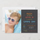 Estes convites de festas de aniversários incríveis de jogos com um recurso de vibração de jogos de fliperama vintage apresenta a inscrição retroativa em uma cinza escura e uma grade de matrizes de pontos brancos. "[Name] atingiu o nível [age]" aparece no topo em letras digitais retroativas, com os detalhes de sua parte abaixo. Uma foto do aniversariante completa esta design.