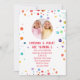 Um convite de aniversário gêmeo neutro em termos de gênero. Brilhante e colorido com um modelo de foto para tornar seu convite realmente único. Faz parte de uma coleção de suprimento de festa de aniversário com suprimentos de partes correspondentes.
