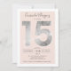 Celebre um marco em estilo com esta elegante design de quinceñera, com uma grande folha de prata "15" e delicada camada de guião. O fundo suave e a tipografia moderna dão-lhe um aspecto chique e eterno. O verso inclui espaço para uma foto pessoal, criando um belo convite de manutenção que combina glamour e sentimentos. Ideal para as elegantes quinceañeras, doces quintos, ou celebrações modernas de marcos femininos.