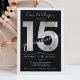 Uma folha de prata moderna, chica e elegante Quinceañera convite de aniversário com uma moderna tipografia Sweet 15 com folha de prata sobre um plano de fundo preto editável. Adicione sua foto atrás ou deixe um fundo preto. Perfeito para o tema da princesa Doce quinze!