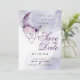 Casamento de Boho Russo Salve a data - o espantoso mandala da lua roxa da Ametista com miçangas cortadas cercadas por rosa poeirento pálido e flores roxas com sotaques de folhagem pálidos realçados por um fundo de lilás pálido e lavagem de água dourada - no verso está uma moldura de aquarela para sua foto favorita. Design pelo BarefootBride ™. Isto é parte de uma suite de artigos de papelaria de casamento, assim como Chás de fraldas, Aniversário e Convites de Natal. Para perguntas ou assistência, entre em contato com o designer indy.designer@yahoo.com.