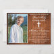 Rustic Wood First Santa Comunion Convite com Cruz e Foto.