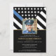 Honre a dedicação e o trabalho de duro de um novo oficial de polícia com este convite de formatura policial personalizável. Apresentando um crachá policial e a bandeira da polícia com riscas brancas e pretas e uma orgulhosa linha azul fina, esta design simboliza força, serviço e sacrifício. O convite é personalizado com o nome do formando em letras douradas, fazer-o como uma lembrança memorável para amigos, familiares e colegas oficiais. Perfeito para celebrar a graduação, promoção ou marco de uma academia de polícia na carreira de um futuro oficial. Convide seus convidados em estilo e mostre suporte para o membro mais novo da comunidade de linha azul fina. Personalize ainda mais com uma foto do policial polícia!