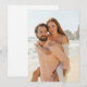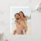 Este convite de casamento apresenta uma cena serena de praia com dois indivíduos desfrutando de um momento alegre, um carregando o outro nas costas. O design apresenta uma composição equilibrada com tons suaves e quentes de pêssego claro e branco cremoso contra um pano de fundo de azuis suaves e bege arenoso, capturando um dia ensolarado na costa. A técnica de arte fotográfica enfatiza um estilo natural e espontâneo, evocando um clima alegre e romântico perfeito para celebrar o amor e a companhia em um ambiente relaxado à beira-mar.