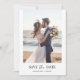 Anuncie seu dia especial com nossa Foto de Praia Elegante Moderna Salvar o Convite de Data. Esse elegante cartão de dísticos captura um belo momento na praia, fazer perfeito para um destino ou casamento tropical. O moderno design minimalista apresenta um esquema de cores preto e branco, adicionando um toque de romance do eterno.