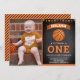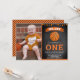 Incomode seus convidados com esta festa de aniversário legal convidando com uma bola de basquete com uma tipografia vibrante contra um fundo de quadro. Basta adicionar os detalhes do seu evento neste modelo fácil de usar e adorar este cartão com a foto favorita do seu filho para torná-lo um convite generoso. Sacudir a placa para revelar um padrão de listras laranja e pretas na parte traseira da placa.