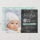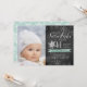 Brrr! Fotos de convites cheios de gelo para comemorações do primeiro aniversário de inverno apresentam uma borda branca com flocos de neve em um fundo de quadro chato rústico com sotaques de cor verde-menta gelada. "Nosso floco de neve está girando um" aparece no topo em letras de escrita de caligrafia branca, com um floco de neve posicionado para a letra "O". Personalize com seus primeiros detalhes de festa de aniversário, usando os campos de modelo, ao lado de uma foto favorita da aniversariante.