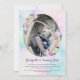 Um convite bonito para o primeiro aniversario floral com pinças, verdes e azuis pastéis suaves no fundo. Mude a foto para a sua linda filha e altere o texto para ser conveniente. A idade pode também ser alterada para ser diferente, de modo a ser adequada para as crianças que estão a fazer duas ou três ou mais vezes.