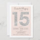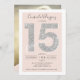 Um convite de aniversário moderno, chico e elegante de cinta Quinceañera com uma moderna tipografia Sweet 15 com brilho prateado sobre um plano de fundo cor-de-rosa pincel pastel editável. Adicione sua foto atrás ou deixe um fundo rosa. Perfeito para o tema da princesa Doce quinze!