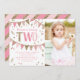 Na moda e segundo convite de aniversário tocável com banners de bunting padronizados com brilho e confete cor-de-rosa e ouro. Personalize com detalhes do evento e sua foto. Vem com um padrão correspondente no verso. // PARTE DE UMA RECOLHA // O MESMO DESIGN ESTÁ DISPONÍVEL EM Idade ADICIONAL ///