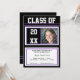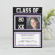 Faça o upload de quatro fotos suas para a frente deste convite contemporâneo preto e roxo e personalize o texto com o ano do seu graduado. O texto adicional diz: "Turma de". Se as fotografias carregadas não forem do seu agrado, certifique-se de usar o link: "Editar isto na nossa ferramenta de design agora"! Preencha o nome do seu graduado e as informações da festa. Compre em grande quantidade e economize.