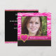 Convites Foto de 20 de aniversário de zebra branca e rosa-q