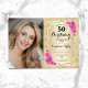 Elegante convite floral feminino para o 50º aniversário com sua foto. Design de vidro com ouro brilhante falso. Apresenta faixas, rosas cor-de-rosa, fontes de script e confetti. Perfeito para uma festa de comemoração de na moda adulto. Personalize com seus próprios detalhes. Pode ser personalizado para qualquer idade! Impressos convites Zazzle ou modelo de impressão digital instantânea para download.