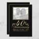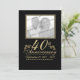 Convite de aniversário dourado e preto com moldura para foto. Personalize para qualquer ano de aniversário de casamento. Altere o texto e a foto conforme necessário.